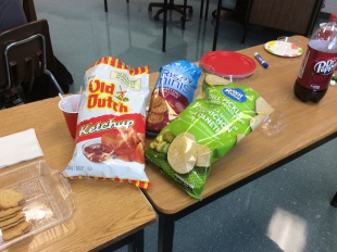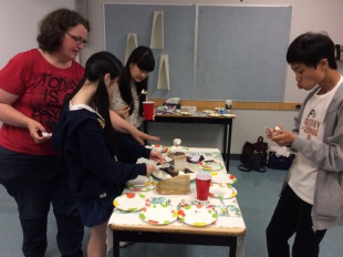 今日の授業では、tastes testをしました。Aクラスはマシュマロを火で炙ってチョコとクッキーに挟んで食べるスモアを作りました。マシュマロに火が付いた時は、振らずに息を吹きかけると鎮火すると教わりました。一方Bクラスは色んな味のチップスを食べ比べて、味の違いを表す英語表現を教わりました。どちらのクラスも楽しみながら学んでいました。