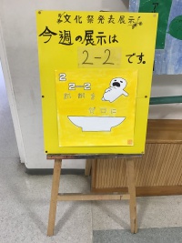 中学校SDGs特別展ー2週目(11/30~12/5)は、2-2の作品「飢餓をゼロに」の一部を展示しています。