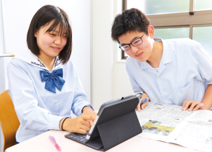 各自が新聞の中から関心がある記事を選び、レポートにまとめる取り組みを中学1年生から継続して行っています。