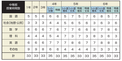 ※本校では60分授業を実施しています。大学入試制度の変更に伴い、授業時間数は変わる場合があります。