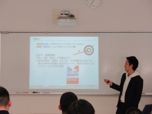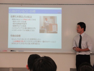 4名の先輩方がそれぞれお話くださる中で共通しておっしゃっていたのは、今の学生生活で得た物は社会に出たときに役立つ場面が多々あるということです。目標に向かってひたむきに努力すること、また壁にあたって悩むこと、どんな経験を通してでも人は成長し、その機会が沢山ある学生生活の時間を大切にしてほしいということを伝えてくださりました。