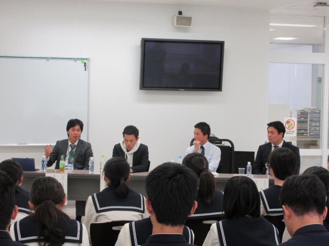 現在、社会人として活躍する4名の卒業生から、仕事内容や学生生活当時の話など、多くの話を聞かせていただきました。