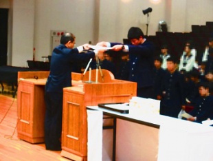 2016年02月29日(月) 校友会ニュース < 校友会 < 卒業生の方へ 校友会入会式 本日、開智ホールにて中等部6年生と高等部3年生が集い、校友会の入会式が行われました。 校友会の会長様を始め役員の方々も駆けつけてくださり、学校を卒業してからも開智生の絆を大切に歩んでいって欲しいとメッセージをいただきました。 ホールでの入会式後、各クラス役員生徒は会議室にて対面式が行われました。