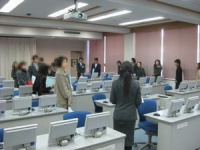 その後、校内施設見学です。体育館や図書館、マルチメディア教室(コンピューター教室)などをご案内いたしました。一部、クラブ活動中の様子もご覧いただきました。
