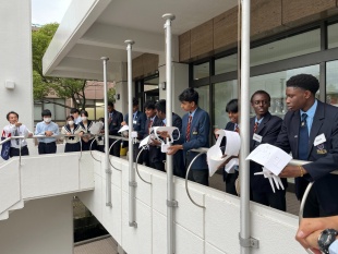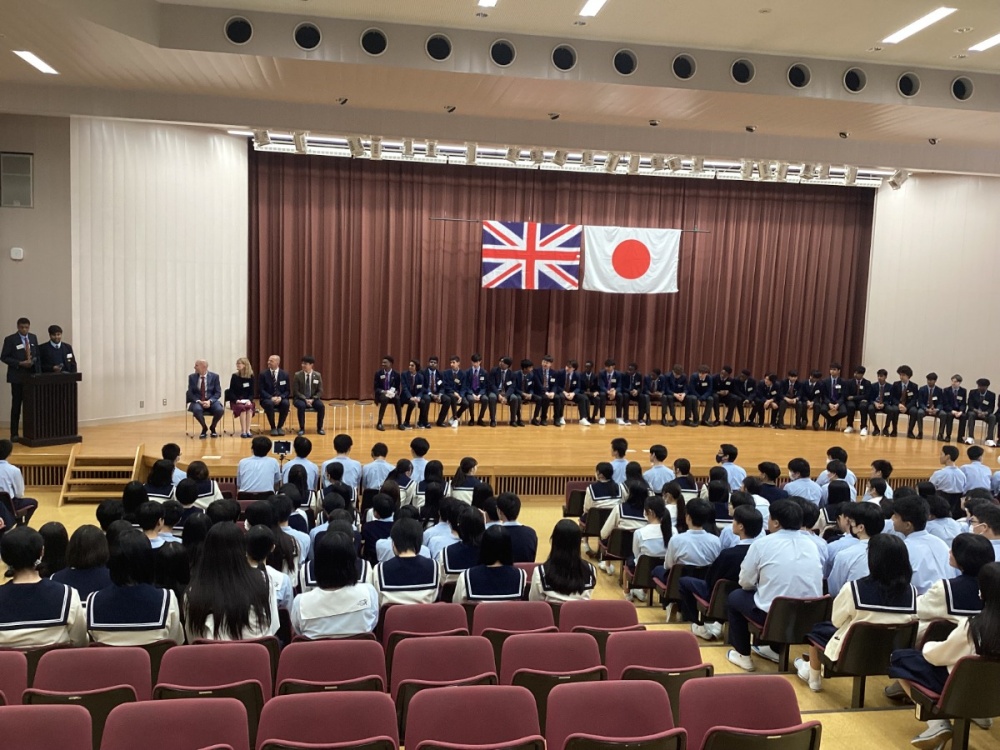 歓迎セレモニーは校長先生の英語での挨拶に始まり、両校の生徒代表が、開智生は英語で、ダートフォード生は日本語で挨拶を行い、校歌で締めくくりました。