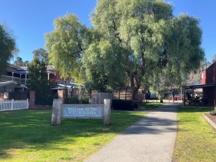エチューカはメルボルンのあるヴィクトリア州と、シドニーのあるニューサウスウェールズ州の州境を流れるマレー川沿いの街です。マレー川はかつては羊毛などの運搬に使われ、そのほとりにあるエチューカは19世紀後半には内陸部で最も栄えた街だそうで、今もその面影を残す歴史的な建物が多くあります。メインストリートの向こうには自然が広がり、地元オーストラリアの人々が観光やキャンプによく訪れるそうです。