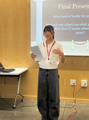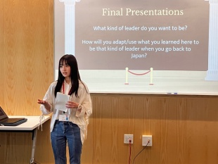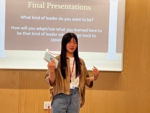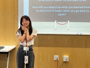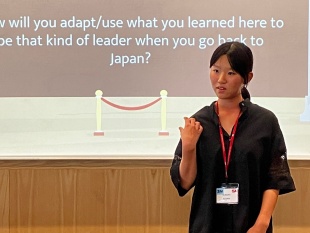 I learned that for a speaker, it really helps when the audience shows some reaction, rather than staying silent. I’m also glad that I had the chance to think about what kind of leader I want to become, and how I can apply what I’ve learned during these five days. I’d like to actually put it into practice after I return to Japan.