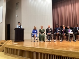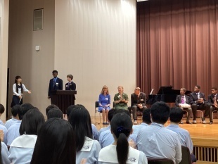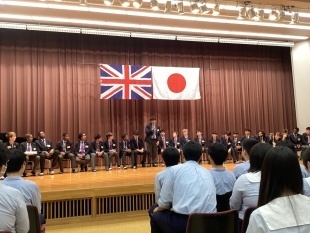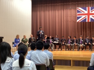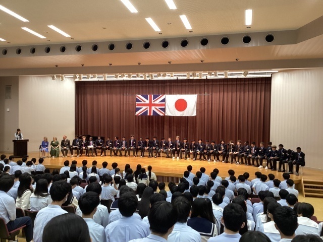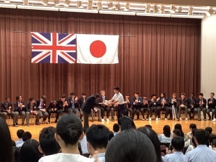 歓迎セレモニーでは、校長先生や開智の生徒は英語で、ダートフォードグラマースクールの皆さんは日本語で自己紹介を行いました。