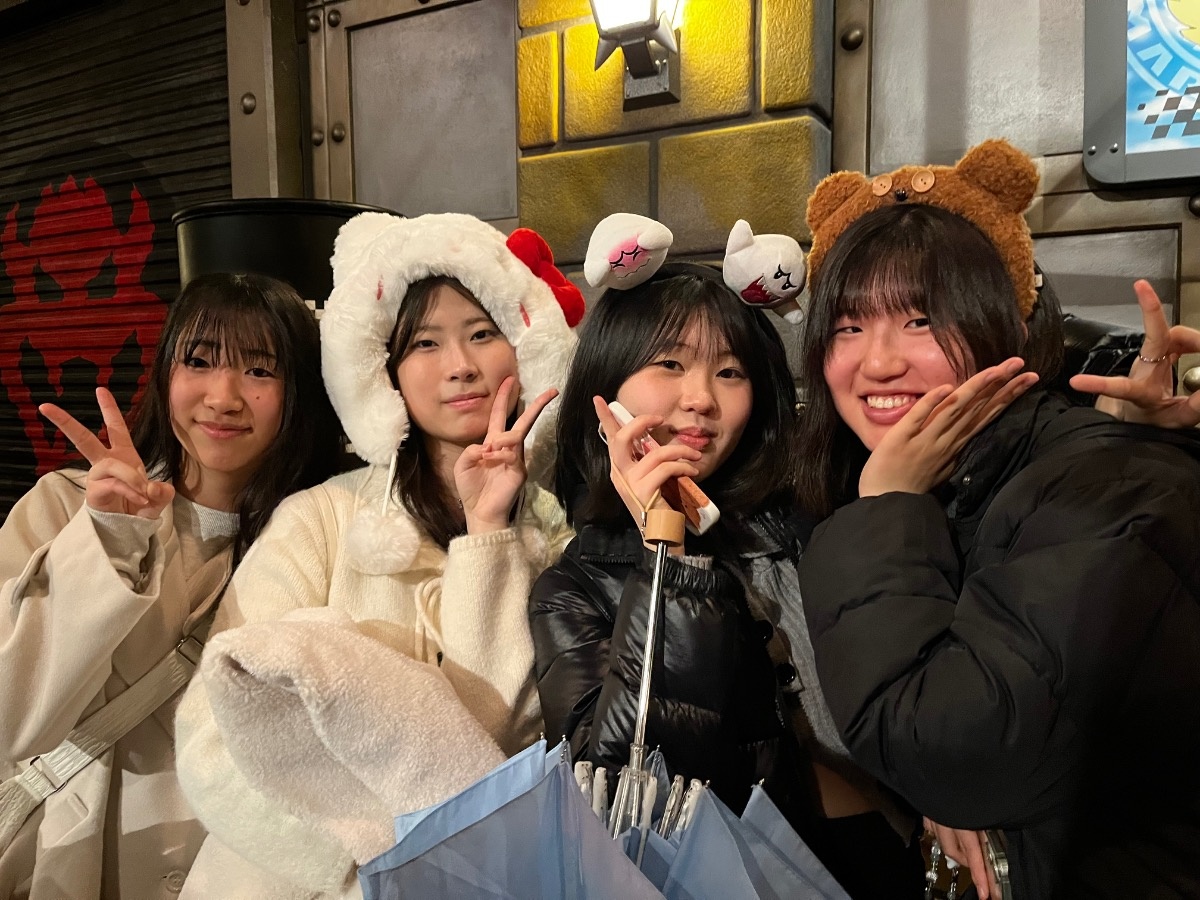 2026年02月12日(木) 国際交流 < お知らせ < 最新ニュース 韓国姉妹校交流@USJ 韓国姉妹校交流をUSJ で行いました。韓国ペアの生徒と仲良く周りました。雨の中ではありましたが、みんな楽しく過ごし、待ち時間には、韓国語を学びました。とても有意義な時間でした。別れを惜しみながら、帰路に着きました。