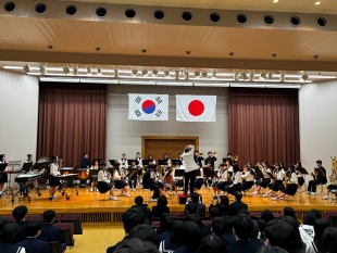 文化交流会 문화교류회では、音楽部は朝鮮民謡アリラン、USJに因んでジュラシックパークの曲などを演奏してくれました。聴衆の心に響きました。
