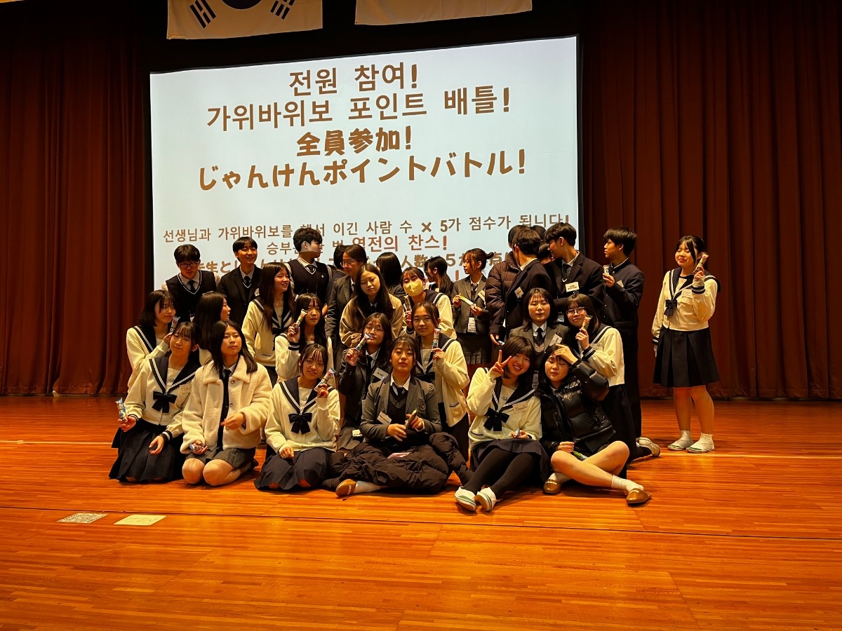 開智の姉妹校である韓国釜山にある釜山鎮女子高等学校と養精(ヤンジョン)高等学校から64名の生徒が来日し、2月10日(火)に本校で歓迎会を開催しました。釜山鎮女子高等学校は1955年に創立され、養精高等学校は1964年創立の伝統ある学校です。本校とは、姉妹校協定を結んでおり、交流をしております。