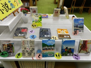 2016年01月09日(土) 図書館だより < お知らせ < 最新ニュース 1月の特集コーナー 2016年最初の特集は「和」特集です。 日本といえば、着物・お米・俳句・折り紙・能・忍者…などなど、たくさんのテーマで本を紹介しています。 もう一つの特集は「小説あいうえお」。 タイトルの頭文字を「あ」から「わ」まで50音順に並べました! こんな珍しい並べ方をした時は、まだPOPをつけていないのに貸出しが伸びます。 知ってるタイトルは見つかりましたか? 連休前にぜひ一冊借りましょう!