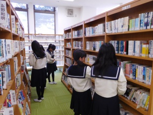 4年1組が国語の授業時間に図書館へ来ました。 1時間の読書タイムを楽しみました。