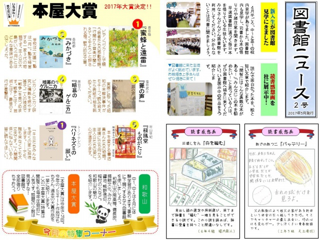 2017年05月08日(月) 図書館だより < お知らせ < 最新ニュース 図書館ニュース2号を発行しました 新入生の図書館見学を終え、4月からさっそく新入生が本を借りに来てくれています。 今回は生徒が描いた「読書感想画」を紹介しています。 プリントアウトはこちら