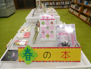 2018年04月07日(土) 図書館だより < お知らせ < 最新ニュース 「春の本」コーナーを設置しました 今月は「春の本」特集です。 春らしい写真集、植物図鑑、詩集、楽譜、小説などを集めました。 特に植物図鑑は<家・学校周辺で見かける植物>を扱った図書が何冊かあります。 花萌える春に植物を愛でてみませんか?