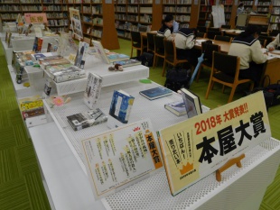2018年05月09日(水) 図書館だより < お知らせ < 最新ニュース 「本屋大賞」コーナーを設置しました 先月発表された「本屋大賞2018」の1位から10位の本を紹介しています。 『かがみの孤城』で1位を獲得した辻村深月さんは今なんと8歳だそう。 (閏年生まれだそうです) 小ネタとしてお友達に教えてあげてください。 2017年、2016年、2015年のノミネート作品と それ以前の大賞作品も並べています。
