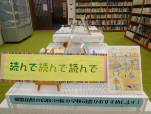 2018年12月03日(月) 図書館だより < お知らせ < 最新ニュース 「読んで読んで読んで」コーナーを設置しました 「読んで読んで読んで」は毎年、和歌山県下の高校の司書たちがお薦めする本をまとめた冊子です。 今年も「読んで読んで読んで」に掲載された図書を展示しています。 図書のプロが推薦する、一風変わった本がたくさん集まりました。 司書たちによる紹介文も同時に展示中です。