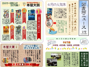 2015年05月14日(木) 図書館だより < お知らせ < 最新ニュース 図書館ニュース2号を発行しました 4月の貸出はなんと947冊! 新入生の中1と高1がよく借りてくれました。 今回は「本屋大賞」ノミネートの本を紹介しています。 書店員さんが選んだだけあって、どれも面白そうですね! プリントアウトする方はこちら