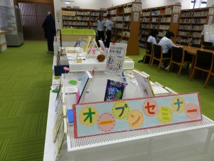 2015年07月03日(金) 図書館だより < お知らせ < 最新ニュース 7月の特集コーナー 今月11日は大学の先生をたくさんお招きして講義を聞く「オープンセミナー」です。 図書館では先生方の著書を紹介しています。 工学・理学・教育学・社会学・医学など分野別に並んでおり、探しやすくなっています。 また、ぺりかん社『なるにはBOOKS』も同時に展示しています。 『医師になるには』『小学校教諭になるには』など、いろんな職業を紹介している学校定番シリーズです。 もうひとつは落語特集。 25日は落語鑑賞会です。 当日に上方落語・江戸落語が十分楽しめるように、落語の絵本や読み物を紹介しています。