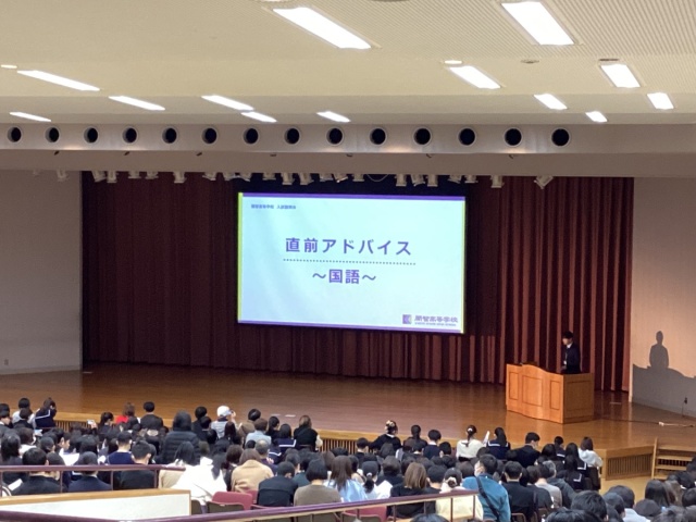 2025年12月13日(土) 高校入試 < 入試関連情報 < 最新ニュース 高校 入試説明会【本校】 本日,最終の入試説明会を実施させていただきました。 今回の説明会では,入試直前アドバイスもさせていただきました。 入試本番まで,体調に気をつけてお過ごしください。 入試直前まで実力はのばすことができます。 諦めずに,努力することが大切です。 本番で実力を発揮出来るように応援しています。