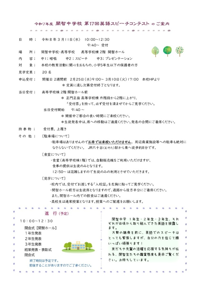 開智中学校 第17回 英語スピーチコンテスト 見学について