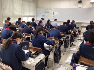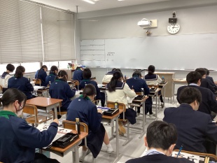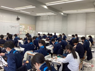 本日、中等部1、2、3年生は書初競書会の清書をしました。 筆先に神経を集中させて、一画一画丁寧に書いていました。