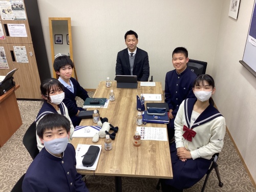 今年も「髙松学校長と語る」と題し、新役員になったばかりの中学生徒会の皆さんが校長室へお邪魔してきました。役員としての意気込みをそれぞれ話したあと、事前に準備していた質問を校長先生に時間の許す限りぶつけてきました。
