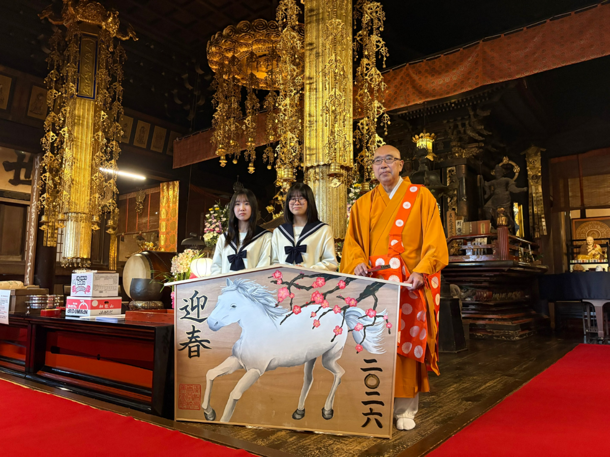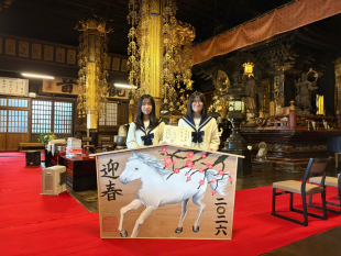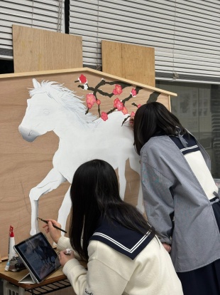 紀三井寺さんから、開智美術部に来年の大絵馬をご依頼いただき、美術部から木村 幸咲さんと、西野 瑛里花さんの2名が制作しました。