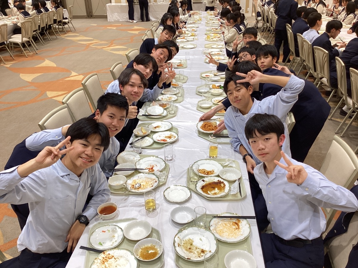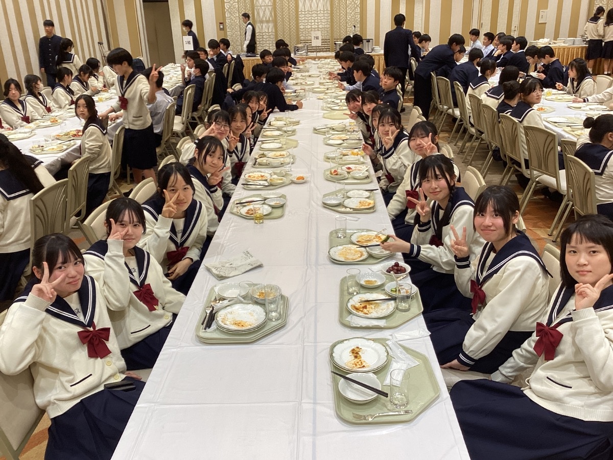 2026年03月04日(水) 最新ニュース 中学修学旅行④ みんなで美味しく夕食をいただきました。最後の振り返りでは「自分たちで計画して行動する中で、思いがけないことが起きた時の対応力や、みんなで協調性を持って力を合わせることを学べた」という生徒の言葉が印象的でした。明日は国会議事堂とディズニーリゾートです。今日はゆっくり休んで明日も最高の一日にしましょうね。