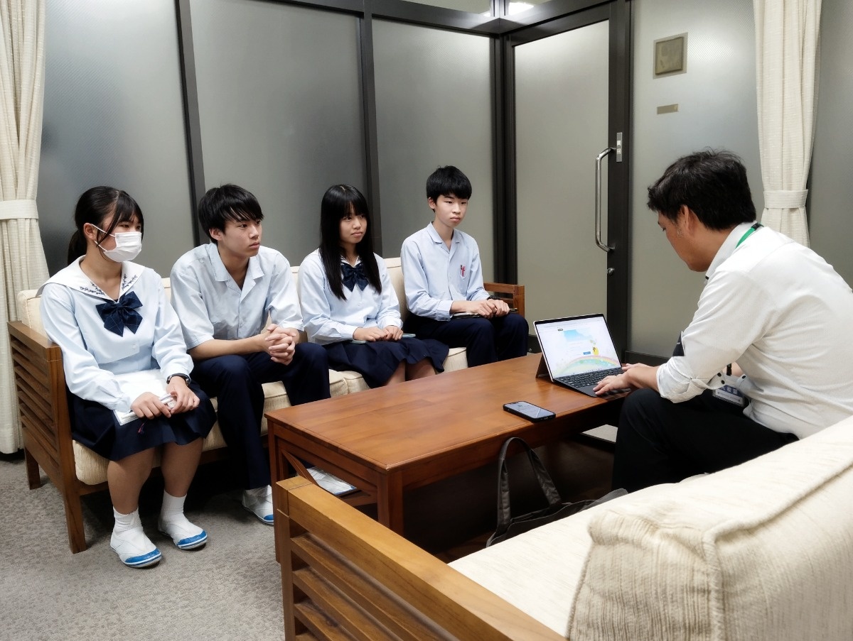 (写真は、CM作成に向けて、放送部の皆さんとテレビ和歌山の方が打合せをしている様子です。)