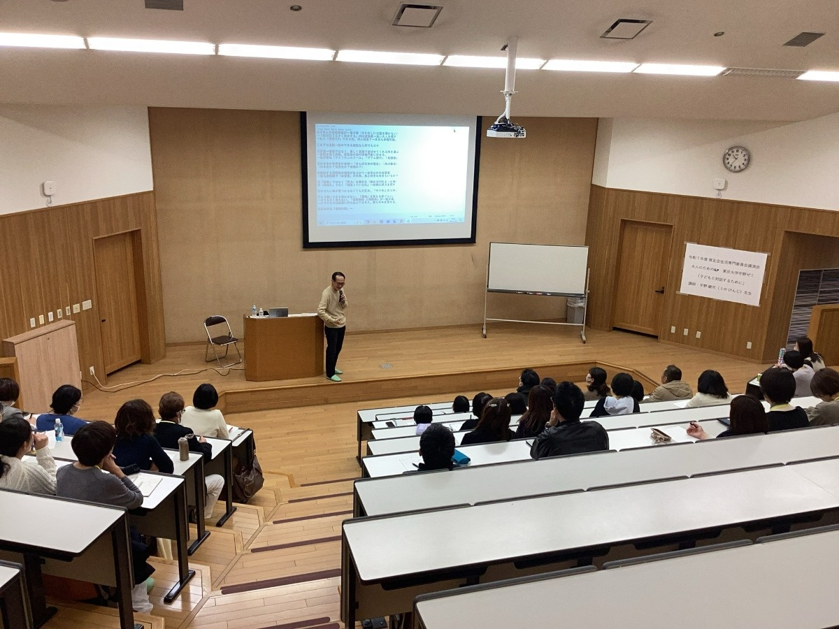 育友会生活専門委員会では、2025年度の活動として、宇野健司先生(東京大学にて最も参加希望者が多いと言われる「宇野ゼミ」を担当。中心テーマは「キャリア論」)に「大人のためのILP 東京大学宇野ゼミ」として「子どもと対話するために」という演題で講演をして頂きました。