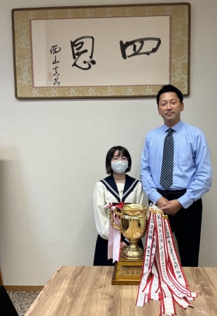 10月22日(土)、和歌山市・和歌山国際姉妹都市親善協会主催の第50回 中学生英語暗唱大会が実施されました。本校から出場した中学2年生の田上由麻さんが、2位に輝きました。暗唱タイトルはO. Henry の「A Present for You」です。登場人物になりきり、これまでの練習の成果を十分に発揮し、演じることができました。英語の発音も素晴らしく、審査員や会場の皆を魅了させてくれました。また、前年度受賞した4年生の岸上先輩からも「発表中は楽しむこと!」とアドバイスを頂き、本番を迎えたようです。本当におめでとうございます。