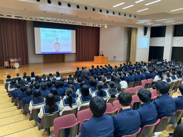 2023年12月20日(水) 学校ニュース < 最新ニュース 中等部4年生・高等部1年生対象「情報モラル教室」 本日12/20(水)6限、中等部4年生・高等部1年生対象に「情報モラル教室」を実施しました。 講師として和歌山県警察本部生活安全部サイバー犯罪対策課の方をお招きし、 “被害者にも加害者にもならないために”という視点から、スマホやインターネットの危険性について 講演していただきました。 SNSを利用する機会が増える年末年始を前に、軽はずみな行為や安易な対応が、 自分はもちろん周囲の大切な人にも迷惑や不利益を与えてしまうことを理解する良い機会となりました。