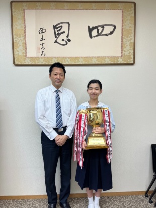 9月28日(土)、和歌山市・和歌山国際姉妹都市親善協会主催の第51回 中学生英語暗唱大会が実施されました。本校から出場した中学2年生の間瀬千尋さんが、見事優勝に輝きました。暗唱タイトルはSteve Jobs の「A Graduation Gift from Steve Jobs」です。このスピーチはジョブズが2005年にアメリカのスタンフォード大学の卒業生に送ったものです。Steve Jobsになりきり、力強い、心のこもった演技でした。これまでの練習の成果を十分に発揮し、また、英語の発音も素晴らしく、審査員や会場の皆を感動させてくれました。ありがとうございます。そして本当におめでとうございます。