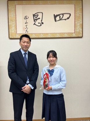 10月6日(日)に高円宮杯第76回全日本中学校英語弁論大会 和歌山県予選があり、3年1組の榎原みづきさんが奨励賞をいただきました。おめでとうございます。