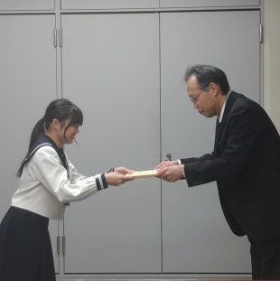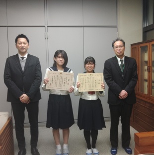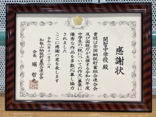 2024年12月16日(月) 学校ニュース < 最新ニュース 「税の作文」表彰 12月16日(月) 和歌山税務署から、松本誠一署長様が来校され、本校中3生が取り組んだ「税の作文」受賞者への表彰を行ってくださいました。 和歌山県納税貯蓄組合総連合会会長賞 3-4 那須爽良 さん 和歌山税務署長賞 3-1 芝﨑暖花 さん また、本校の取り組みが評価され、学校としても表彰していただきました。 この取り組みをきっかけに「税」を身近なものとしてとらえることができたようです。 これからも社会の仕組みに関心を持ち、自分なりの意見を表現できる力を培ってください。 和歌山県納税貯蓄組合総連合会会長賞 那須爽良 さん 和歌山税務署長賞 芝﨑暖花 さん
