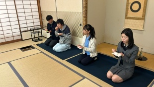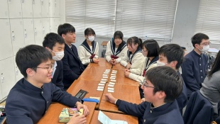 2025年02月13日(木) 学校ニュース < 最新ニュース 台湾、韓国交流派遣プログラム② 今日は、2限目と3限目にたこ焼きを作りました。くるっと回すにはコツがいりますが、皆さん、だんだんと慣れてきて、上手に作っていましたね。熱々でとても美味しかったです。午後からお茶の先生が特別に来て下さり、お抹茶のいただき方、お菓子のいただき方を学びました。そして実際にお茶を点ててみました。6限目は中学3年2組の皆と一緒にお坊様めくりと百人一首を楽しみました。大盛り上がりでした。明日が最後の授業となります。日が経つのは早いですね。