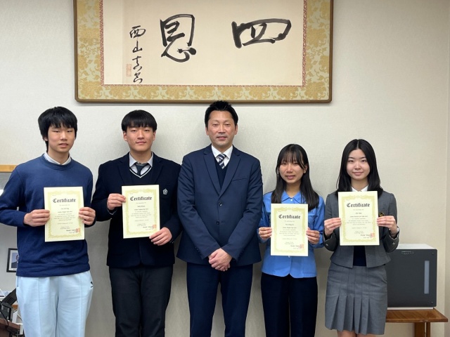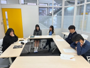 1限目は、田端先生の日本文学の講義を受けました。日本文学は、「無常」が作品に多く使われており、和歌、方丈記を例に取り上げました。また、韓国、台湾でも人気のある優理のドライフラワーを聞きました。そして今の心境を俳句にしました。韓国のユウナさんの作品は「もどれない もどれないからこそ うつくしい」です。 台湾のネイサン君は、Millions of stars Sprinkled on a black blanket Guides those who are lost と将来の希望を託した英語俳句を書きました。国語の松村先生に褒めてもらい、大喜びしました。4限目は、校長先生から一人一人に修了証書を渡していただきました。異なる文化や価値観に触れることで、視野が広がり、様々な経験を通して、人生がより豊かなものになっていきます。これから何事にも挑戦し、あなた方の未来に幸運が訪れることを心から願っています。