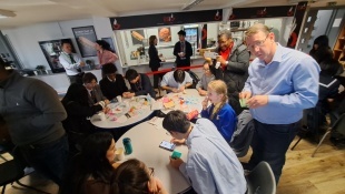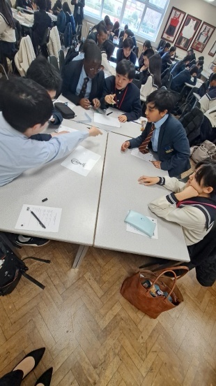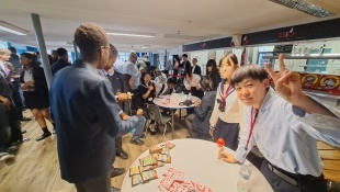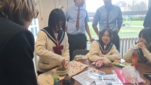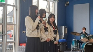 その後は生徒たちがそれぞれ用意した日本文化の紹介コーナーを設け、書道、茶道、けん玉、輪投げ、アニメ、折り紙、かるたなど、さまざまな日本文化をDGS生やホストファミリーに楽しんでもらうことができました。