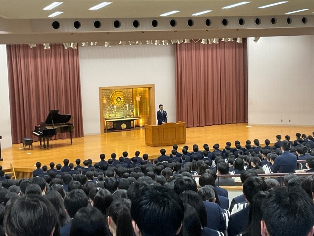 始業式では、校長先生が令和7年度入試大学等合格状況に触れ、「(合格件数という)数字や(合格したという)結果だけを見るのではなく、その背後にある先輩方の努力や合格したときの笑顔、支えてくれた周囲の人々の喜びにも思いを馳せ、在校生のみなさんも、どんな自分になりたいのか、目標を掲げ、それを実現していってください」とのお話がありました。
