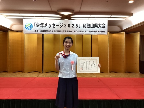 「少年メッセージ2025」和歌山県大会 優秀賞受賞