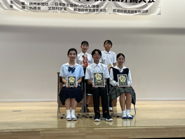 2025年09月09日(火) 学校ニュース < 最新ニュース 高円宮杯第77回全日本中学校英語弁論大会和歌山県予選 3位受賞 9月7日(日)に高円宮杯第77回全日本中学校英語弁論大会 和歌山県予選があり、3年1組の間瀬千尋さんが3位をいただきました。おめでとうございます。テーマは “Unapologetically Me” 「ありのままの自分」です。小学生の時のつらい経験を踏まえ、「ありのままの自分でいること」の大切さを話しました。11月25日から開かれる中央大会に出場します。それに向けて更に表現を磨き、日々練習を続けていきたいです。