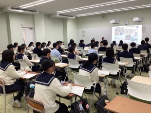 本校の卒業生5名が来校し、生徒に中3当時の話や文理選択、そして現在のキャリアでの経験などの話をしていただきました。