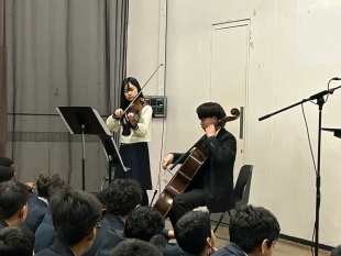 今週は2回生徒の前で発表し、チェロとバイオリンでマイケル君との演奏も披露したそうです。