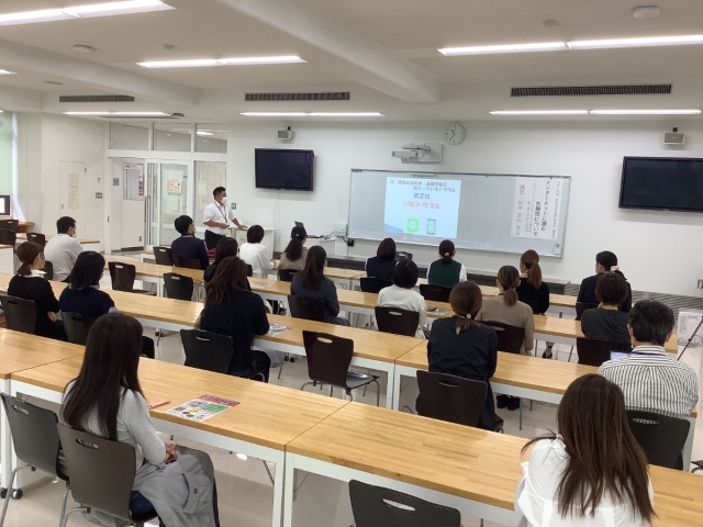 和歌山市の中学校、高等学校で実際に起こっているトラブルをランキング形式でご紹介いただき、日頃から子供たちが気軽に使っているスマートフォンが、思わぬ形でトラブルの元となり、加害者となりうる危険性についてお話いただきました。