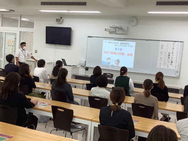 今年度は、和歌山市立少年センターより補導主事田中宣行先生を講師にお迎えし、『インターネットに潜む危険性について〜スマートフォンやタブレット端末を賢く使う方法と注意点〜』をテーマにご講演いただきました。