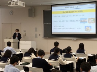 大学の教育内容、学習のようすや様々な取り組み、周辺の環境など受験生が気になるところについて説明していただきました。