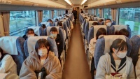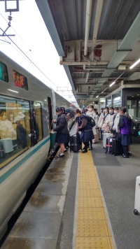 いよいよ待ちに待った修学旅行が始まります。 みんな、すごく良い顔をして特急くろしおに乗って出発しました。