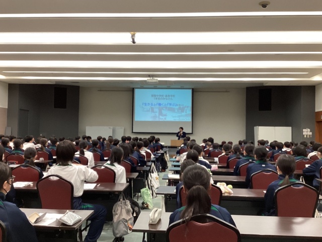 2024年04月11日(木) 行事 < 学校ニュース < 最新ニュース 中1 宿泊研修⑥ 午後はガイダンスが続いたあと、講演会を聞かせていただきました。 中学生としての心得を改めて意識する機会となりました。 その後「スペシャルスタディー」と題して、オリジナル学習レクリエーションを行いました。 クラスで班を作り、その班員で協力して問題を次々と解き、その数を競うというものです。 行程の合間にも少しずつ進め、楽しんでいる様子を見せていました! その後夕飯を食べて入浴し、本日の振り返りを行いました。 明日はいよいよ最終日です!