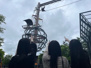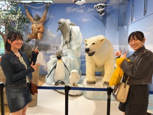 午後からは、25km続く真っ直ぐな1本道や車窓からの眺めを楽しみながら旭山動物園に行きました。行動展示の火付け役となった旭山動物園ですが、行動展示とは動物をリラックスさせることで本来の生態やそれに伴う活動を誘発させて、お客さんに見せるように工夫した展示のことです。水中でのカバの様子や、高いところで綱渡りをしているオラウータンの姿等から、それぞれの動物の能力や特徴を見られました。